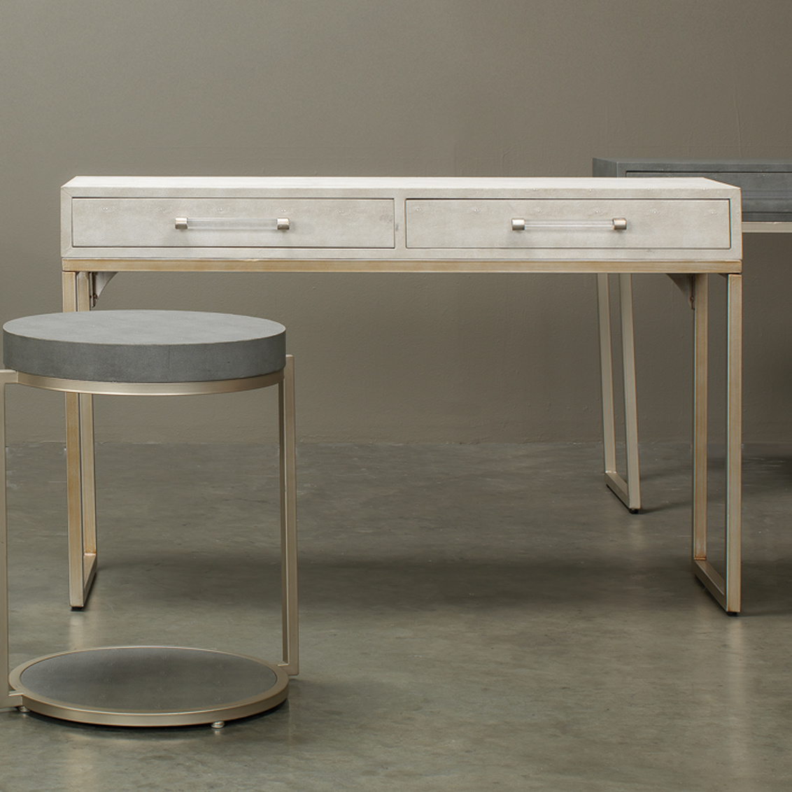 • Finish: Ivory Faux Shagreen & Brushed Champagne Metal