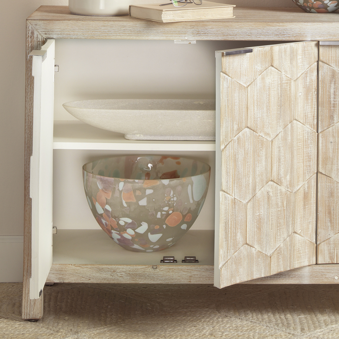 A rainbow of pastel pops out in geometric shapes all throughout the Watercolor Large Bowl. This decorative glass accessory was... Show more