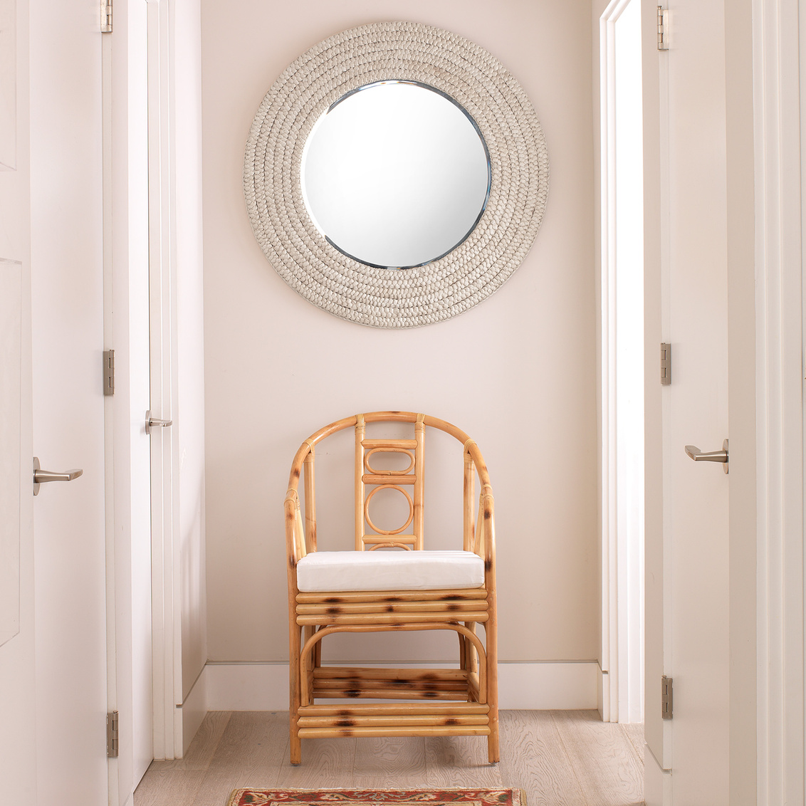 Add natural texture and instant coastal flair to any room with our Meadow Mirror. The circular frame is made of... Show more
