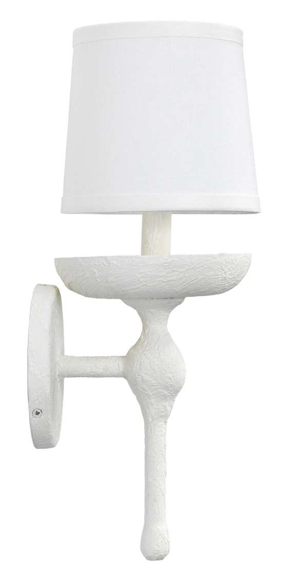A traditional silhouette meets our coastal roots. This white plaster coated wall sconce creates stunning lighting with a casual texture.... Show more