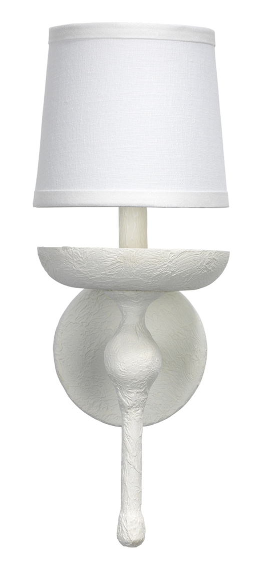 A traditional silhouette meets our coastal roots. This white plaster coated wall sconce creates stunning lighting with a casual texture. The grit of the plaster gives this otherwise formal sconce an approachable aesthetic.