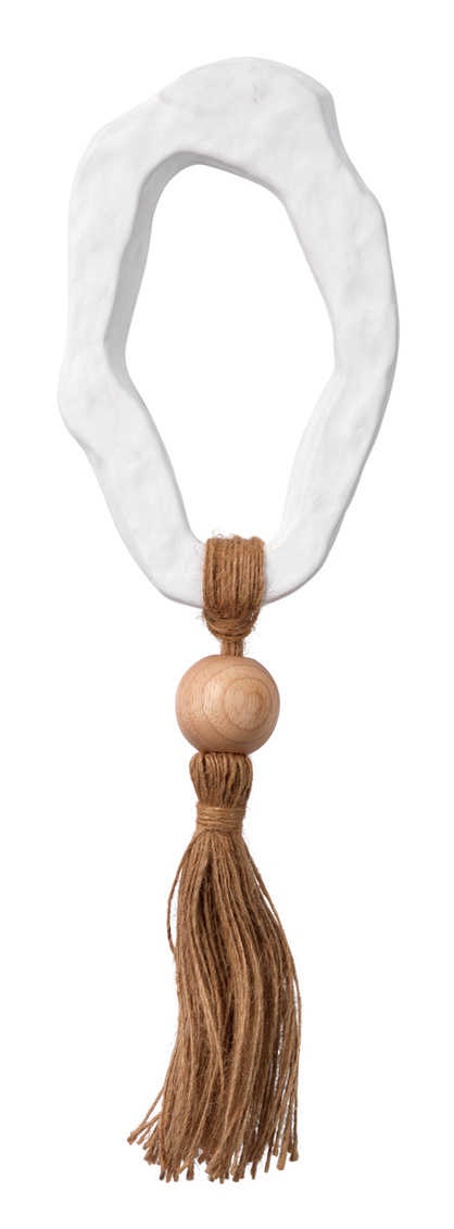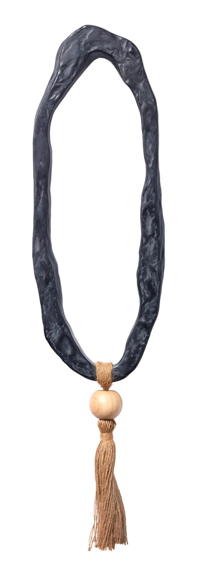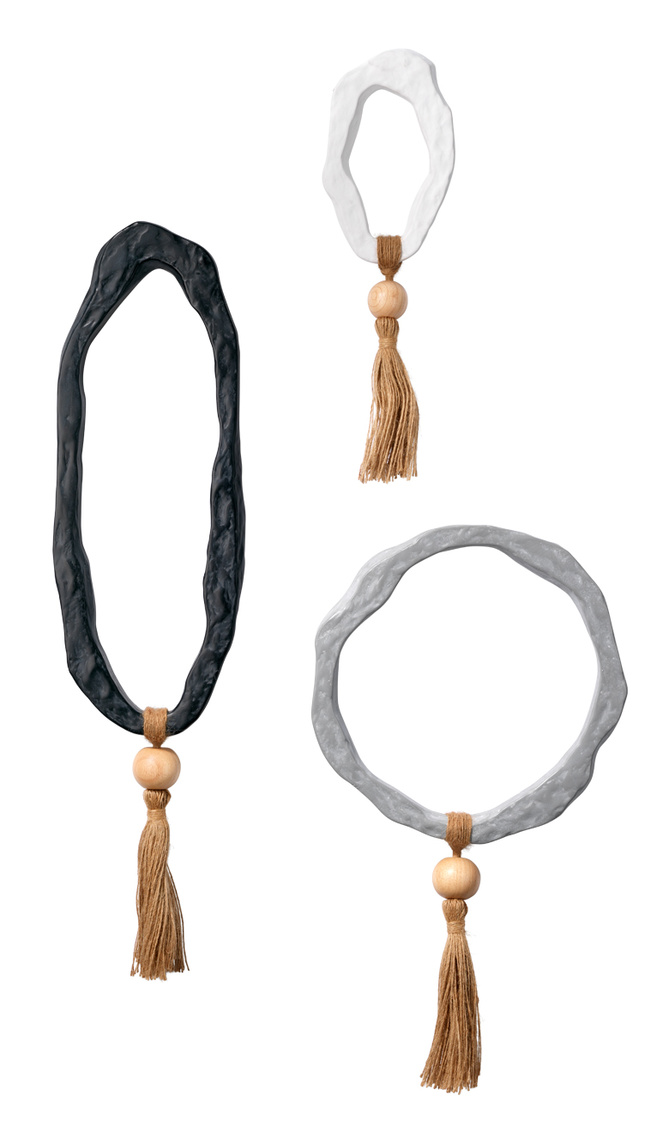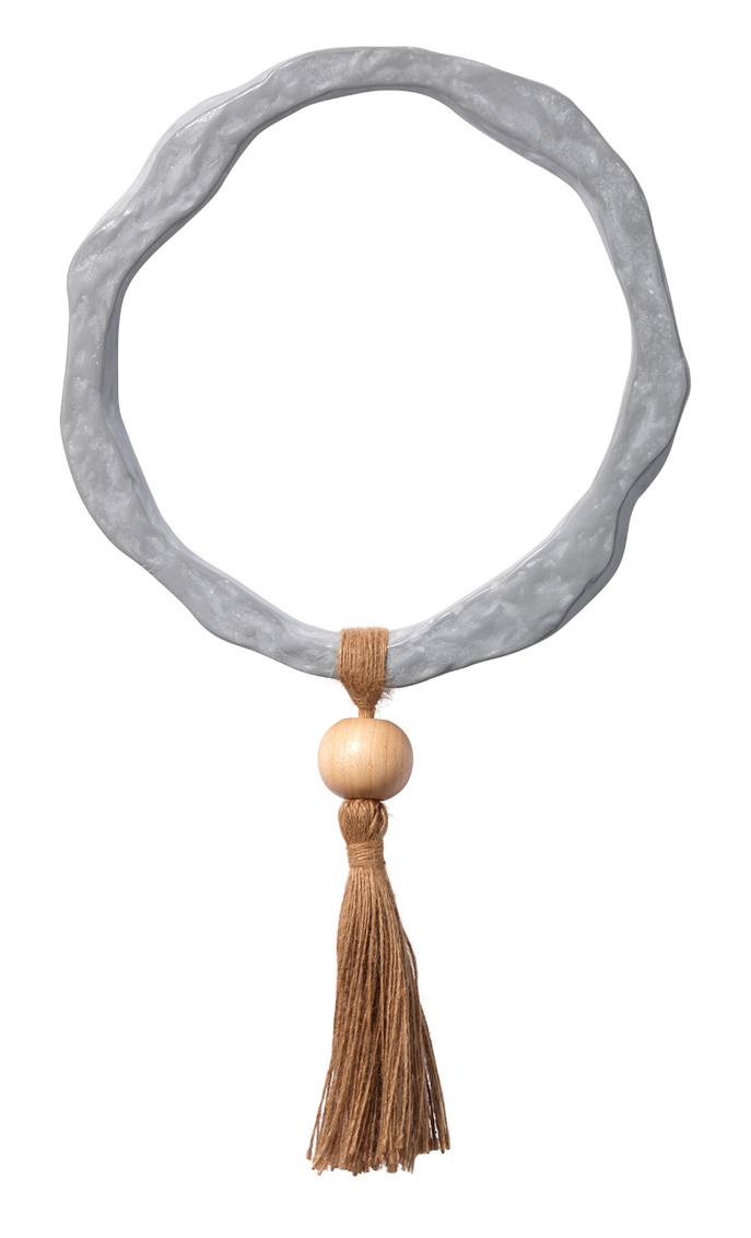- Finish: White, Black & Grey w/ Natural Wood Bead & Jute Tassel