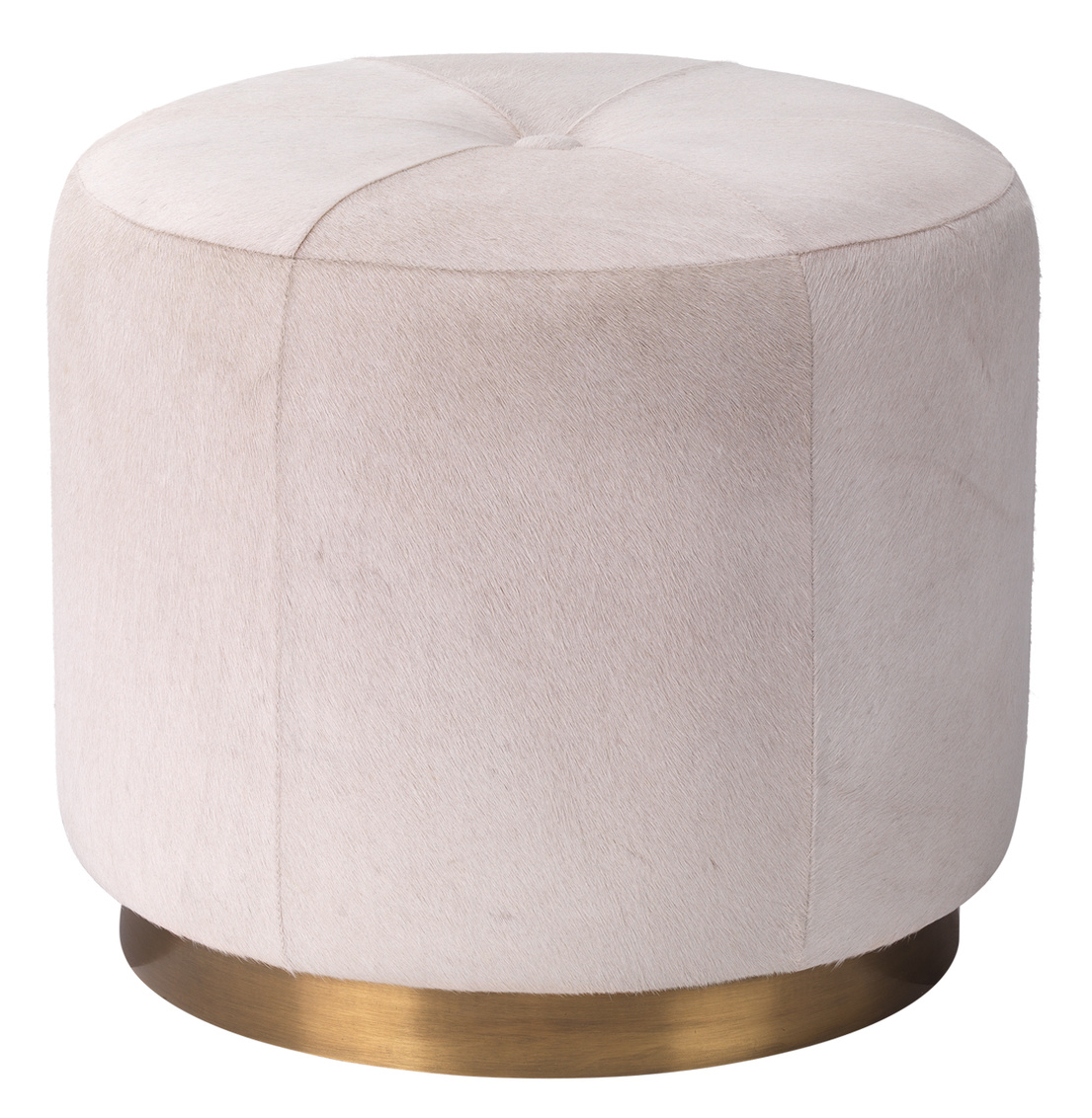 The Thackery collection of hair-on-hide poufs have the unique ability to add both glamour and comfort to any room of the home. Two sizes are available in your choice of white or espresso hides. Each is beautifully handcrafted and accented with a gleaming brass band at the base. Whether you want to pull up an extra seat or put up your feet, with a Thackery pouf you will do it in style!