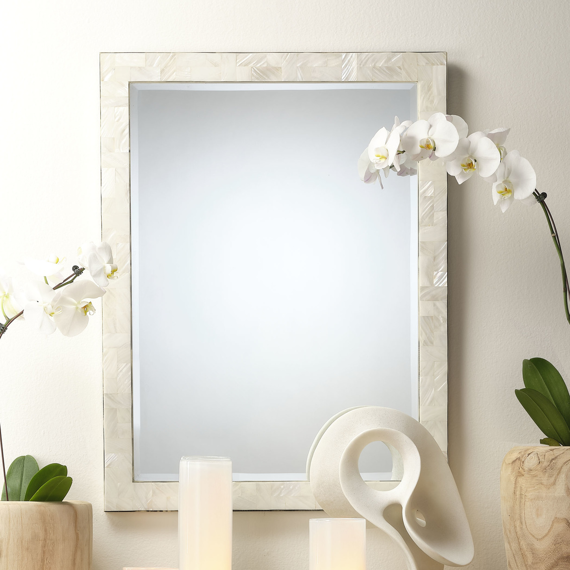 - Finish: Iridescent Multi-Tone White and Natural