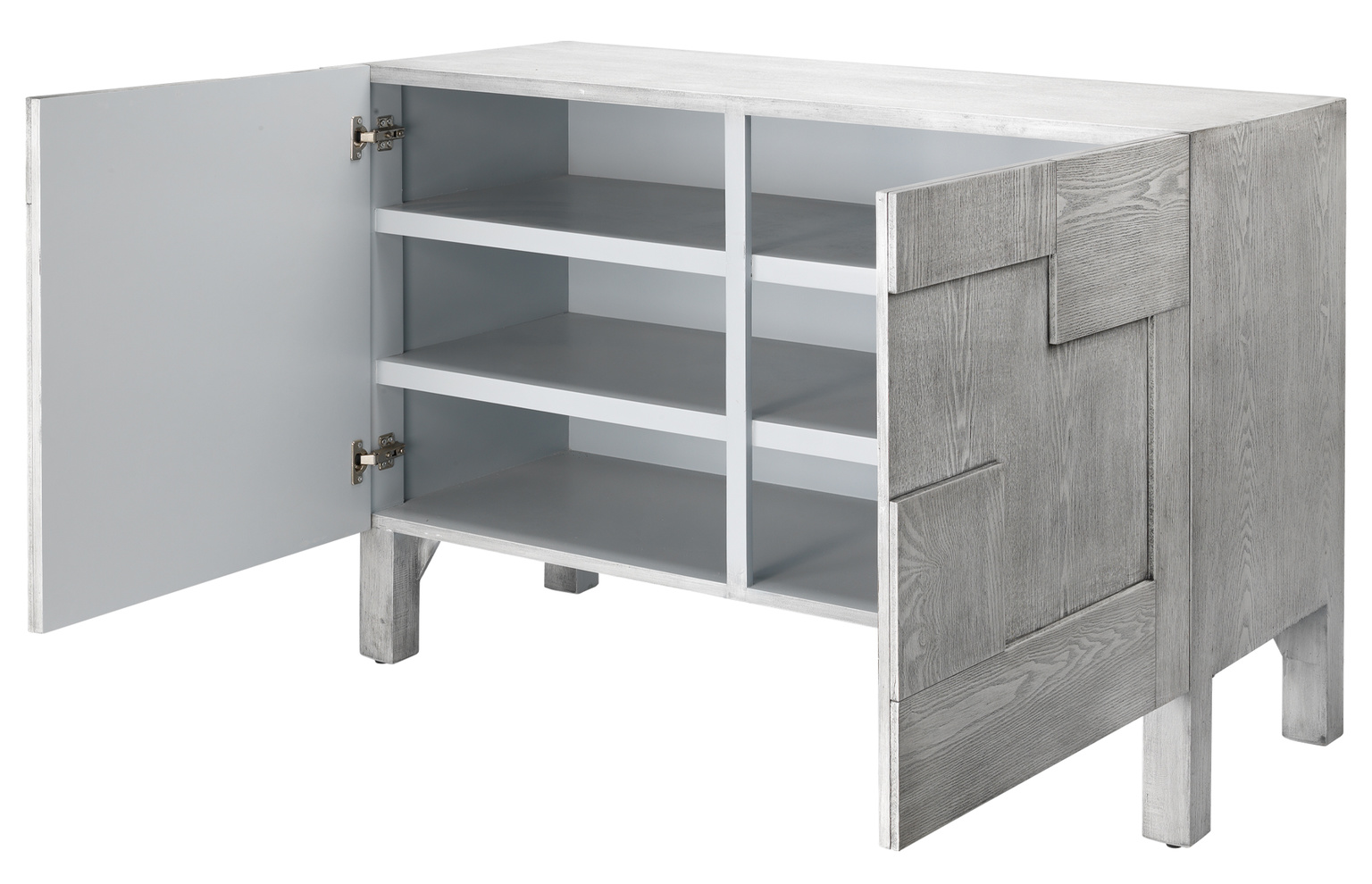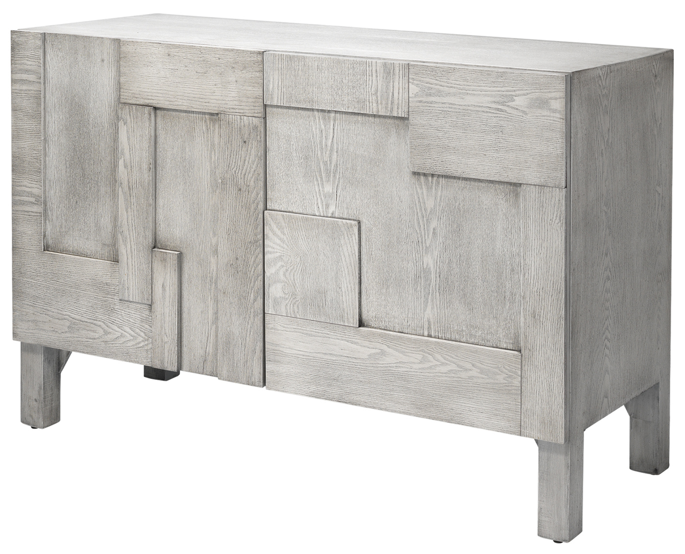 The Context Collection of tables is hard to define. Crafted of softly washed gray ash, the richly grained wood and straight easy lines evoke elegant seaside environments. The intriguing geometric shapes integrated into the exteriors of the doors and drawers add a touch of craftsman charm, and the strong angles add sophistication. The sum of all of the parts is a clean, contemporary look at home anywhere from a city loft to a suburban retreat.