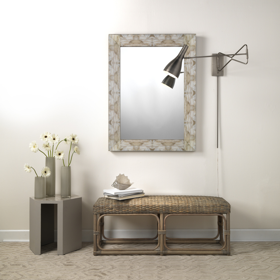Inspired by the beauty of natural horn, our Fragment mirror's frame is lacquered in a light grey and beige and... Show more
