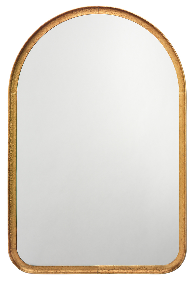 Rich layers of genuine golf leaf add a subtle opulence to this otherwise classic, architecturally inspired metal-framed wall mirror. A full three feet in height, its simplicity is its statement.