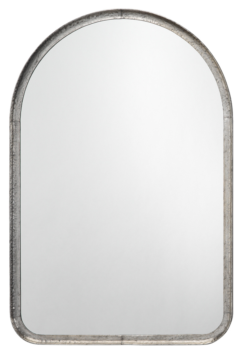 Rich layers of genuine silver leaf add a subtle opulence to this otherwise classic, architecturally inspired metal-framed wall mirror. A full three feet in height, its simplicity is its statement.