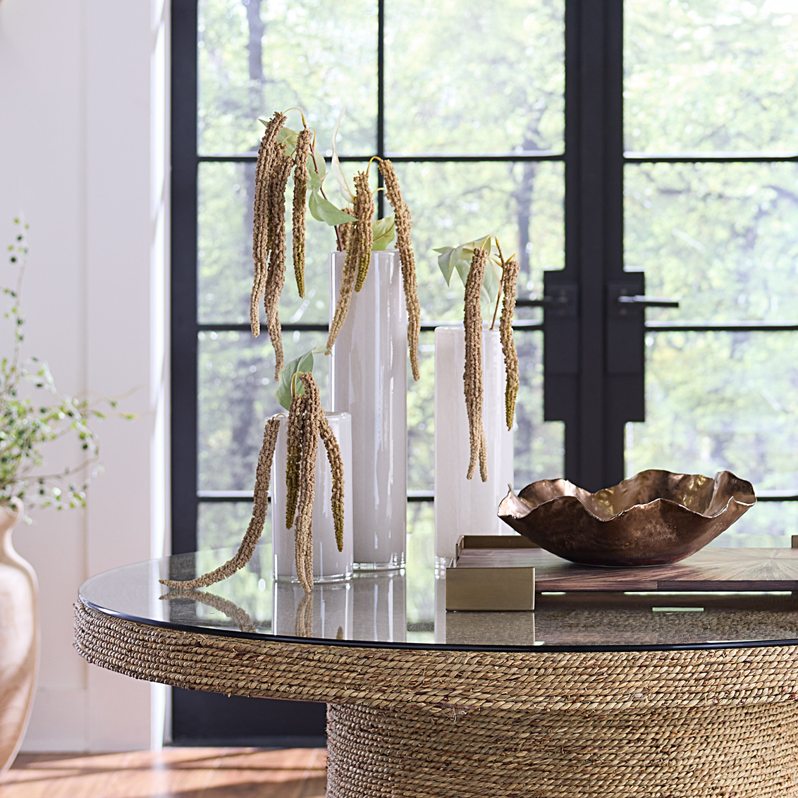 This art glass collection includes three smooth cylinder vases. Each is blown by hand, endowing them with subtle and unique... Show more