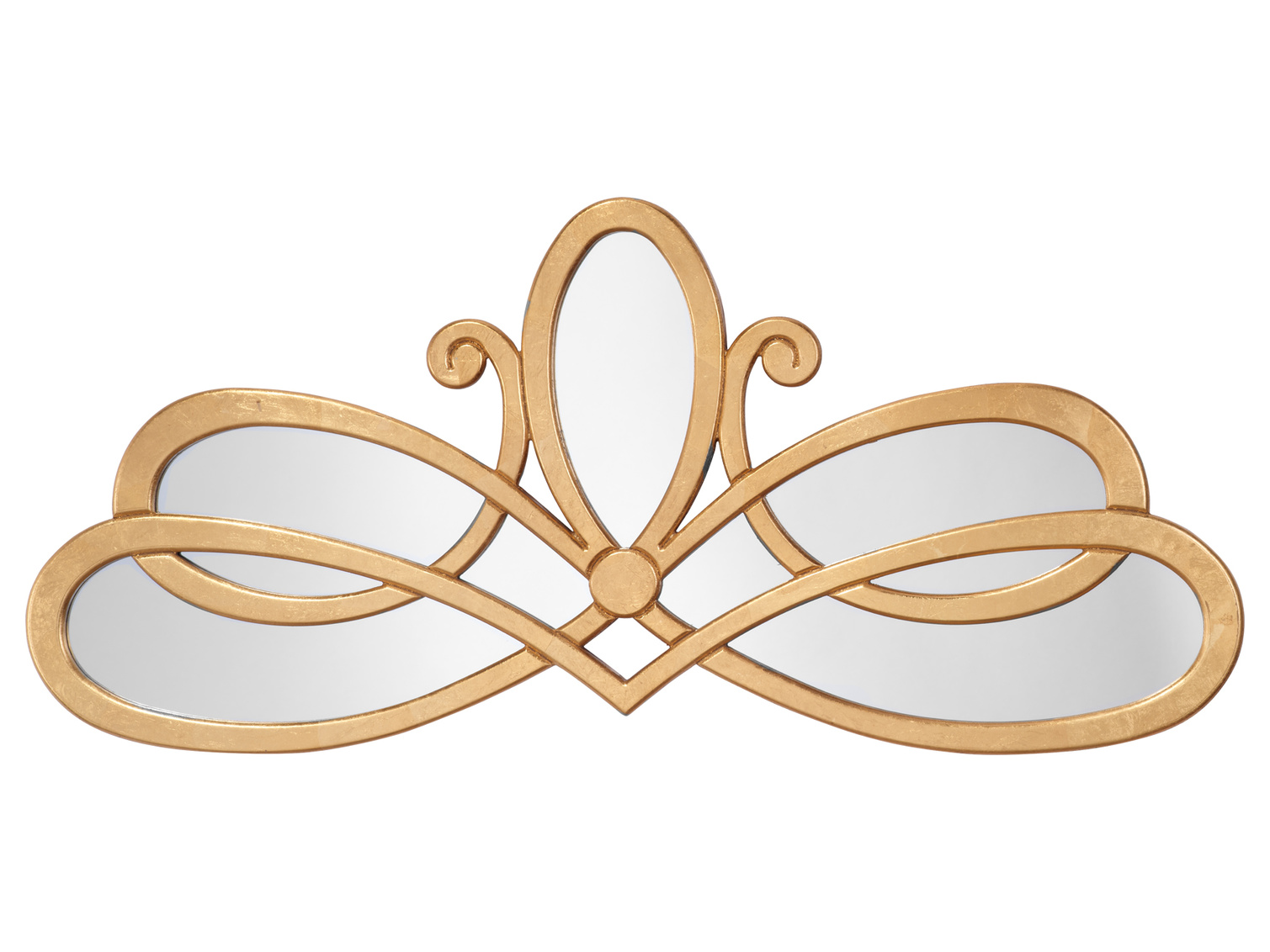 Create a focal point in your home with this stunning mirror featuring a scroll design. Featuring beveled glass surrounded by a slim metal frame hand-finished for an artisanal touch. Place it over a console in an entry or a buffet in a dining area for sparkle and style.