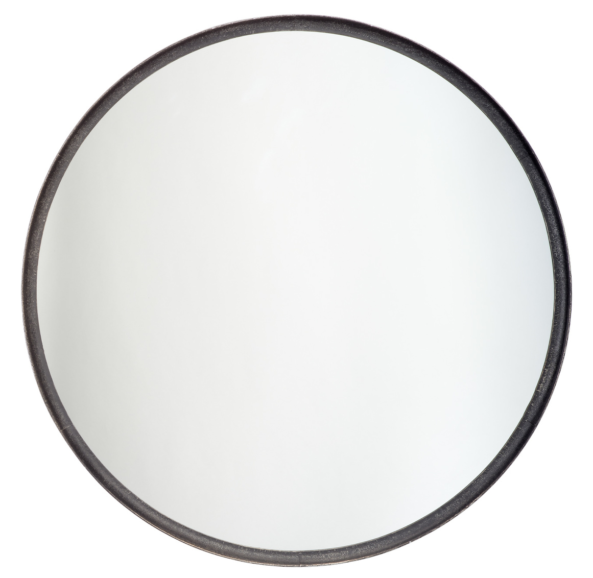 The clean lines of this contemporary wall mirror's frame are forged of hand-distressed black metal. Featuring gently rounded corners that soften the starkness of the design without distracting and the versatility of hanging horizontally and vertically. Mounted above a vanity, sideboard or dresser, its oval shape will soften any room while reflecting light to make your space feel bigger.