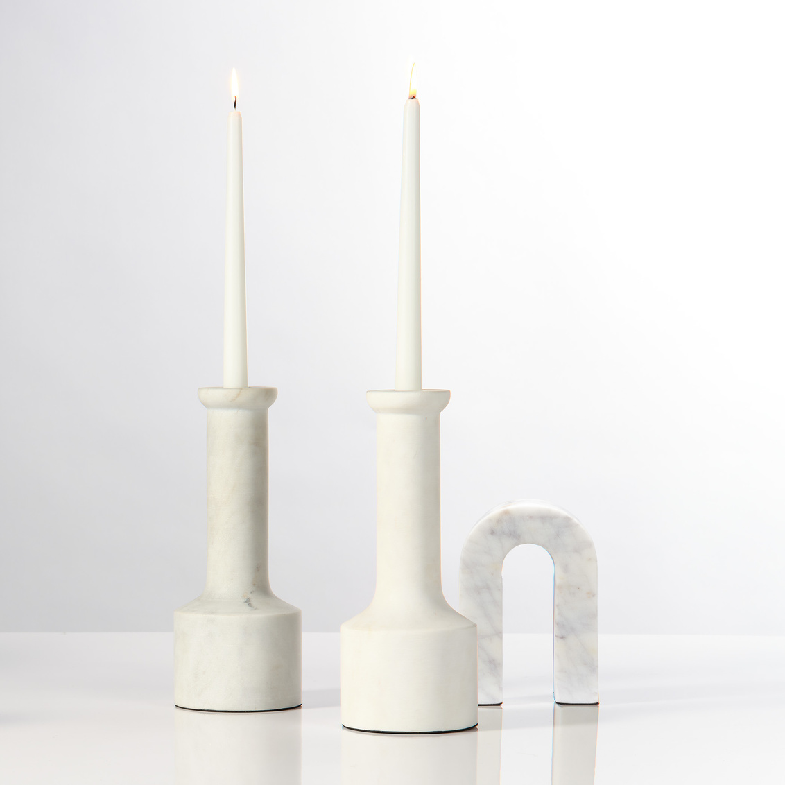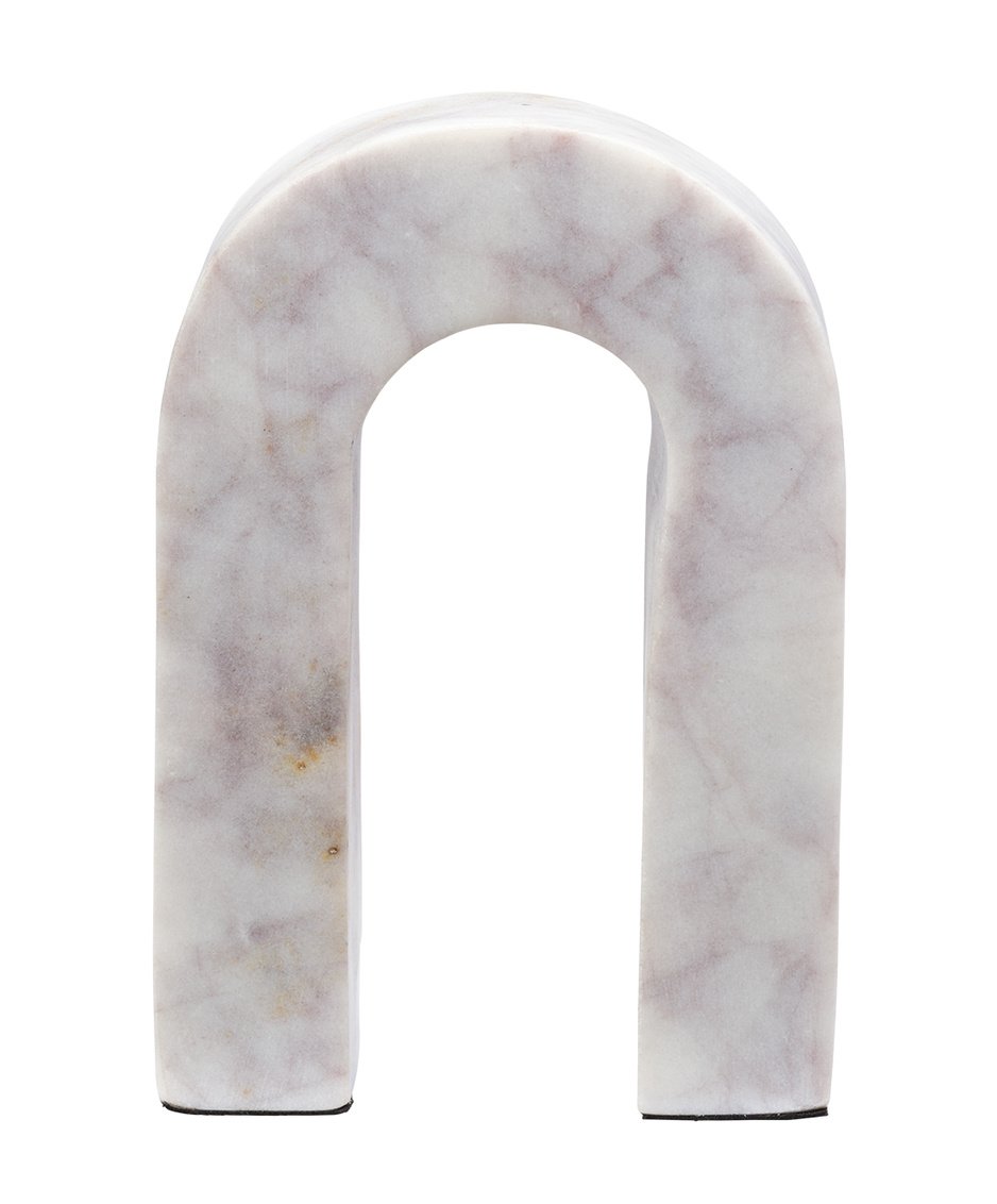 These artisan-crafted marble objects celebrate the beauty of the natural stone from which they are carved. The simplicity of their lines allows the white marble to shine, highlighting and honoring its intrinsic veining, colors, and patterns, and ensuring that no two will be identical. While their original inspiration was London's Marble Arch, the design didn't coalesce until Jaime stripped it of its rigid architectural beginnings and added a soft organic quality, resulting in the lovely, graceful piece you see here.