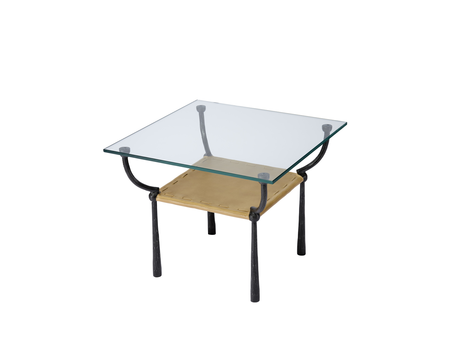 The focal point of this handsome accent table is the layer of rich, buttery camel leather. The softness of the... Show more