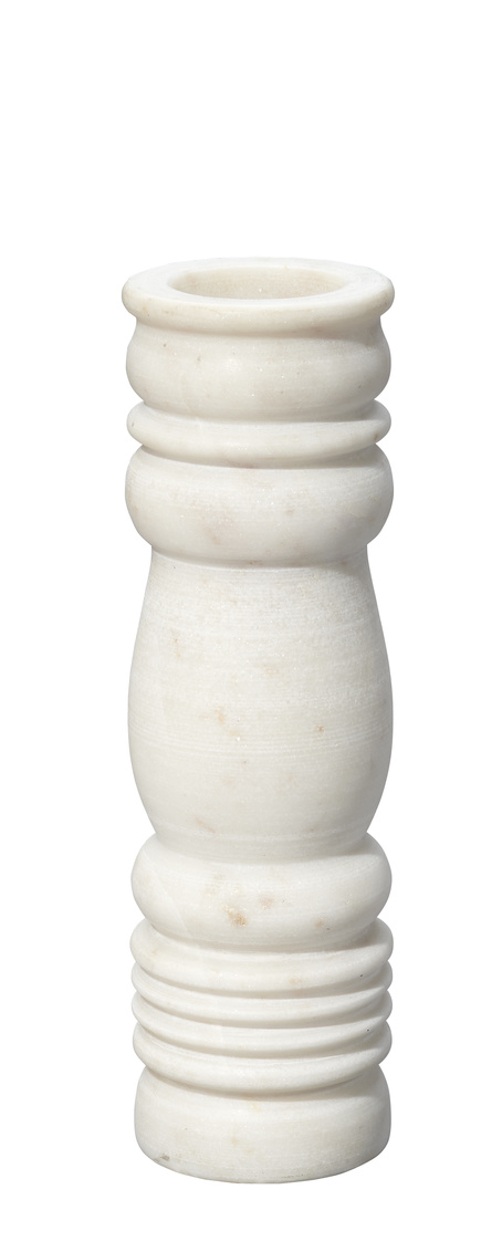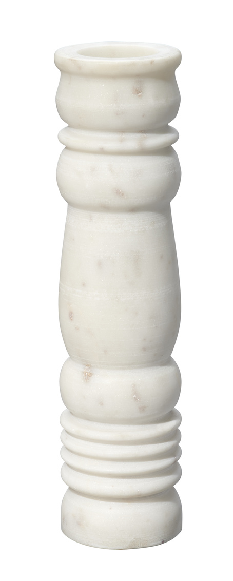 Beautifully artisan-carved of cool white stone, this set of three candlesticks pairs classical inspirations with modern elegance. Their graceful lines allow the natural stone to shine, highlighting and honoring the intrinsic veining, colors, and patterns of the celebrated material, and ensuring that no two will be identical. They are recommended for use with standard 7/8" tapered candles.