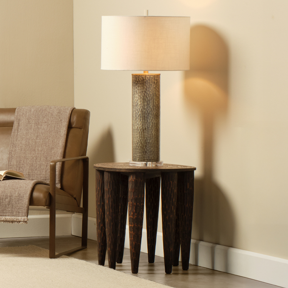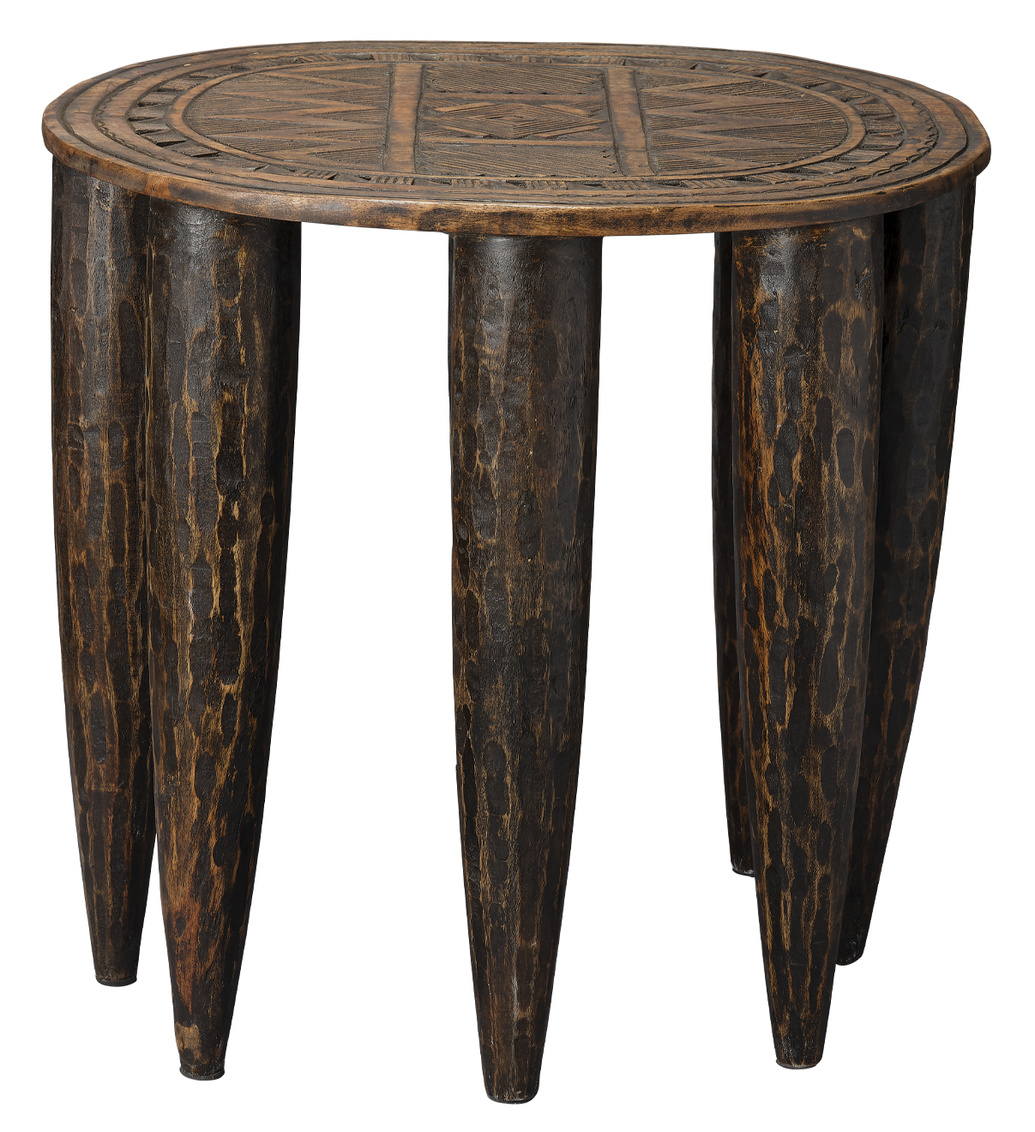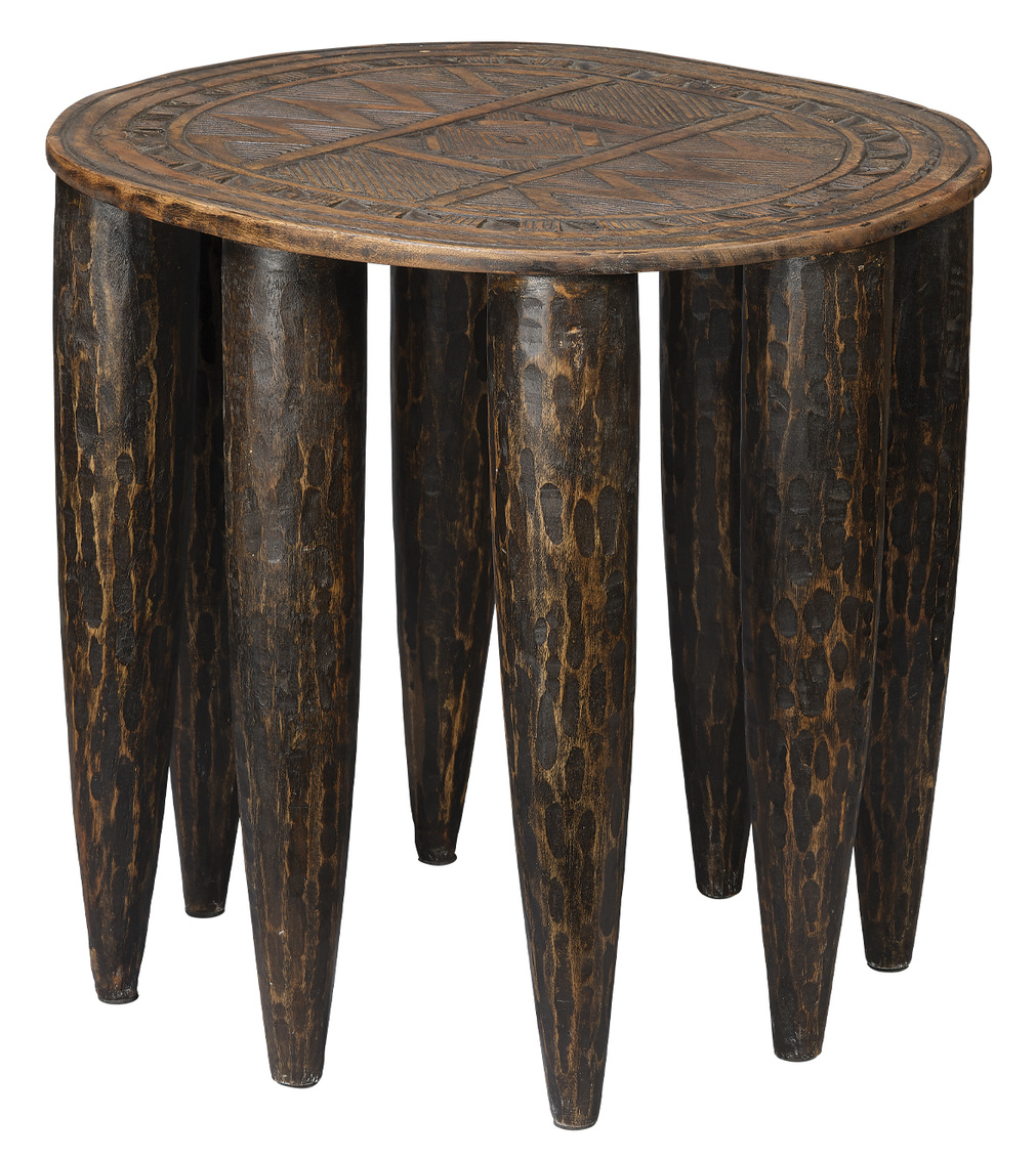 The people of the Naga, India region are known for the uniqueness and beauty of their design aesthetic. These side tables honor that tradition. Each is handcrafted by Naga artisans. The nine tapered legs are carved of sustainably harvested wood from the mango tree, and their seats are embellished with etchings inspired by their classic carvings. Each is a work of art and as such no two will be identical.
