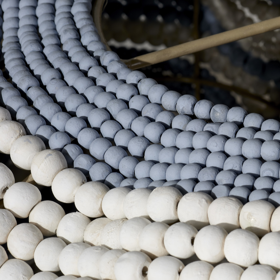 - Finish: White and Blue Wood Beads