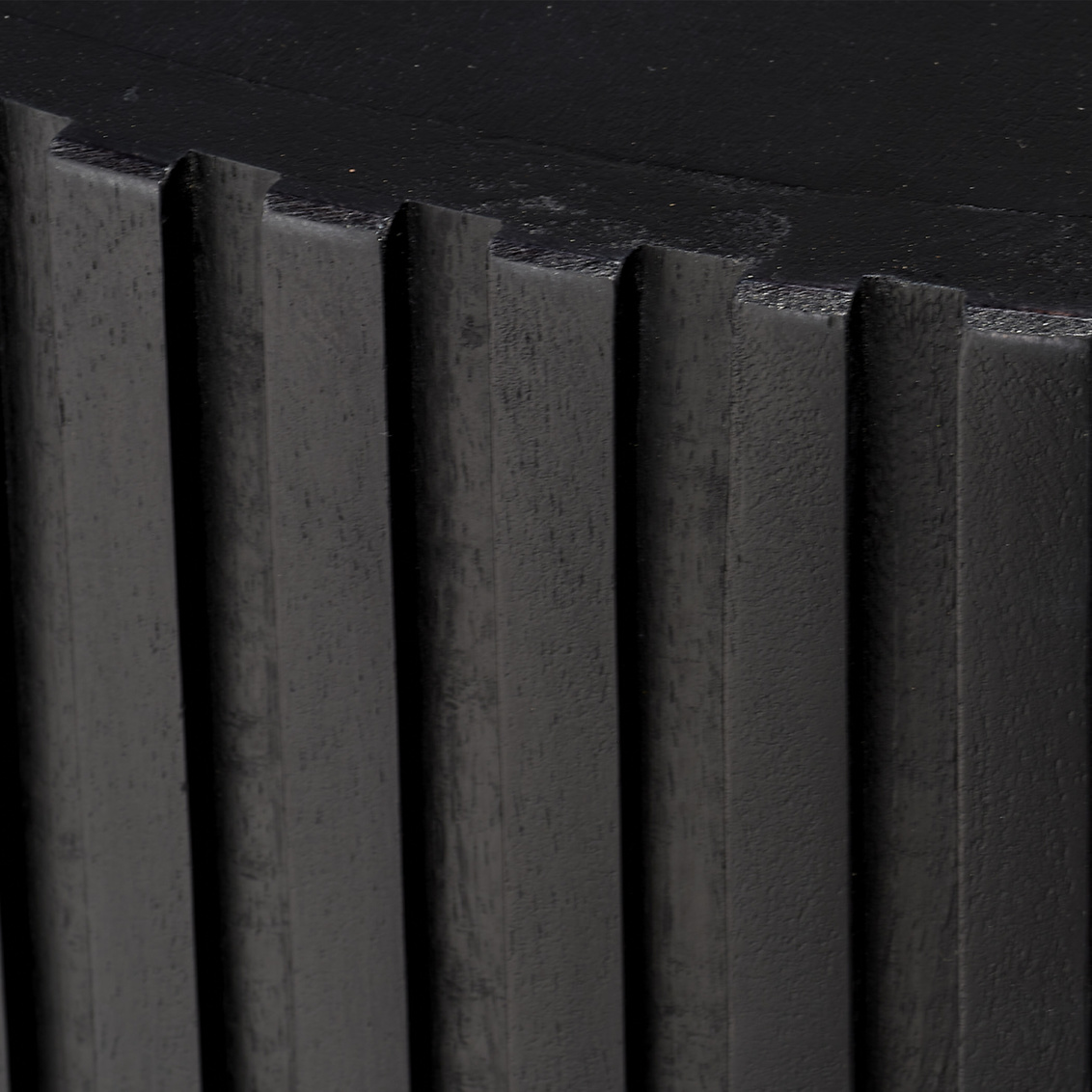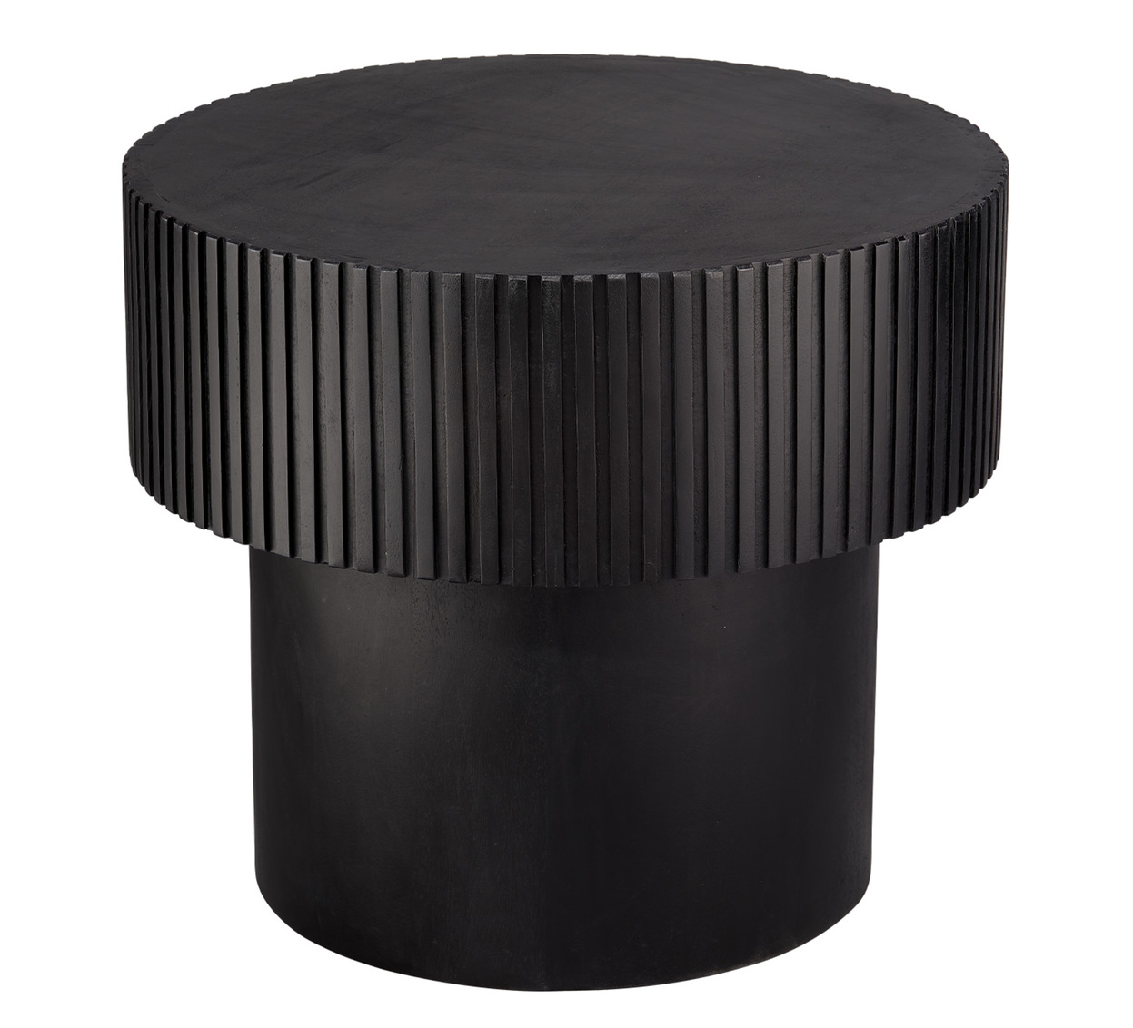 Inspired by European clockworks, these unique accent tables' clean, modern lines are distinguished by richly textural ribbing around the tables' top halves. Each one is expertly artisan carved from the mango tree.