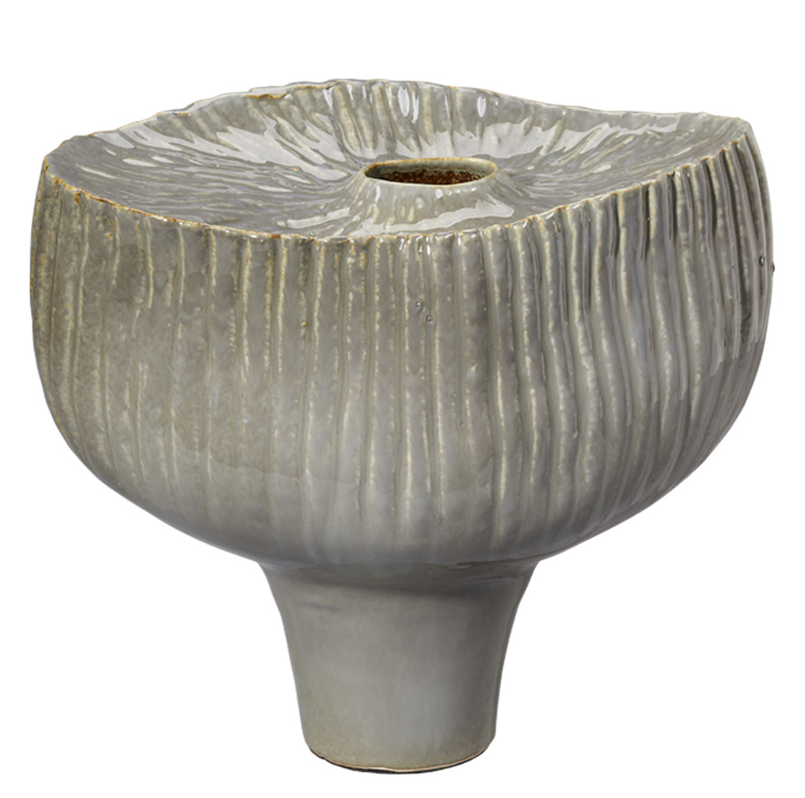 Handcrafted of quality ceramic, these organically inspired vases are finished in a crisp reactive gray glaze. Their unique mushrooming shape... Show more