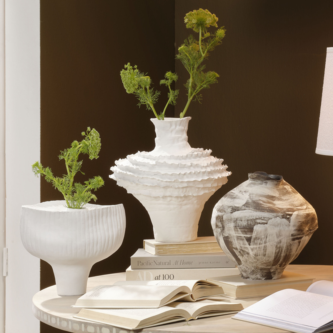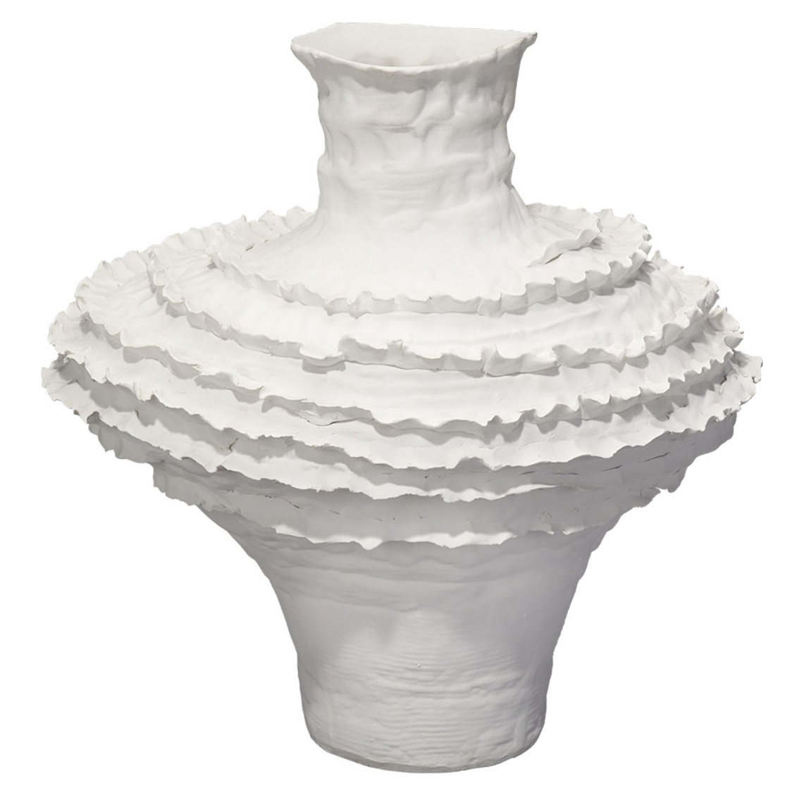 The lines of this evocative vase are open to interpretation. Do you see mounds of freshly whipped cream, a ruffly... Show more