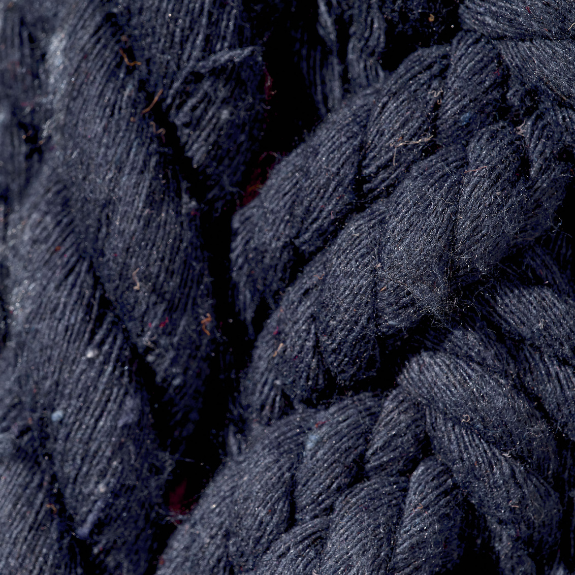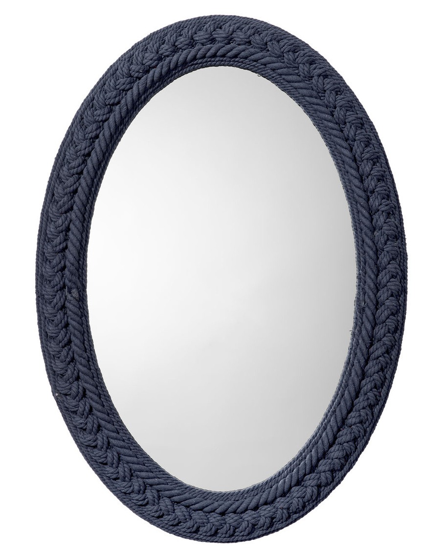 Indigo blue cotton rope is jauntily woven by hand to create the nautically inspired patterns that cover the frame of... Show more