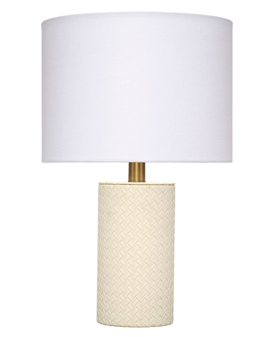 Expertly woven from top-quality gray leather, the body of this sophisticated table lamp showcases a rich texture. The luxurious leather complements a clean white linen drum shade, while the burnished antique brass neck adds an elegant touch. Inspired by Italian fashion, these lamps are the ideal accent for any urban loft.