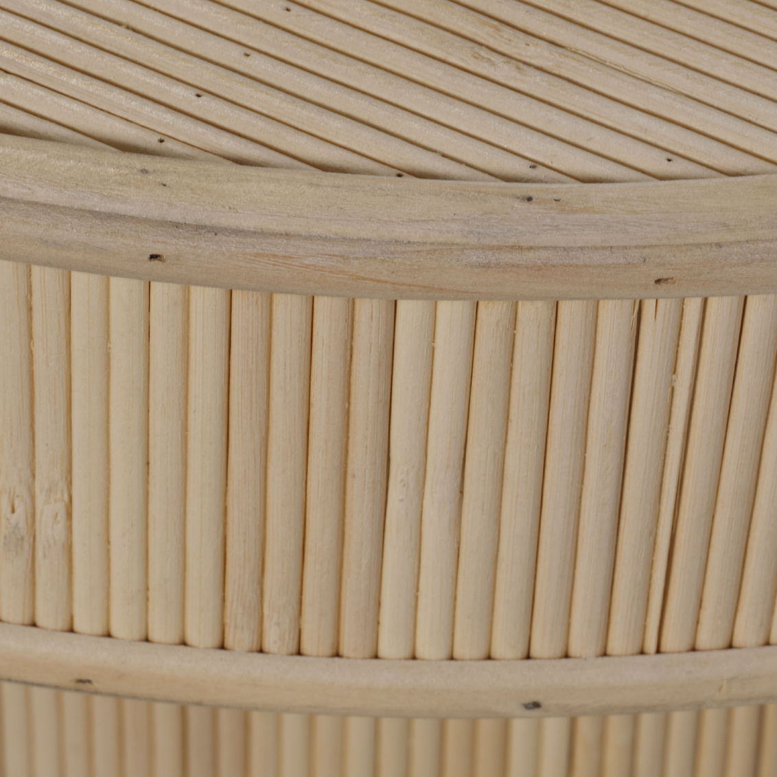 Featuring spare, architectural lines, this handsome side table is handcrafted from strips of bamboo in variegated natural tones. Upscale yet unfussy, its contemporary design offers a timeless appeal, making it an effortless fit for any clean, modern décor.