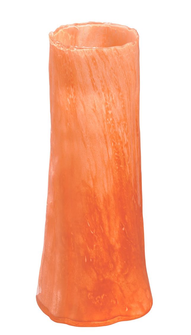Expertly handcrafted from poppy glass, the shape and nuanced details of this tall vase masterfully evoke the majesty of a single, strong sequoia tree. Tall and slim, it is perfect for displaying long-stemmed florals.