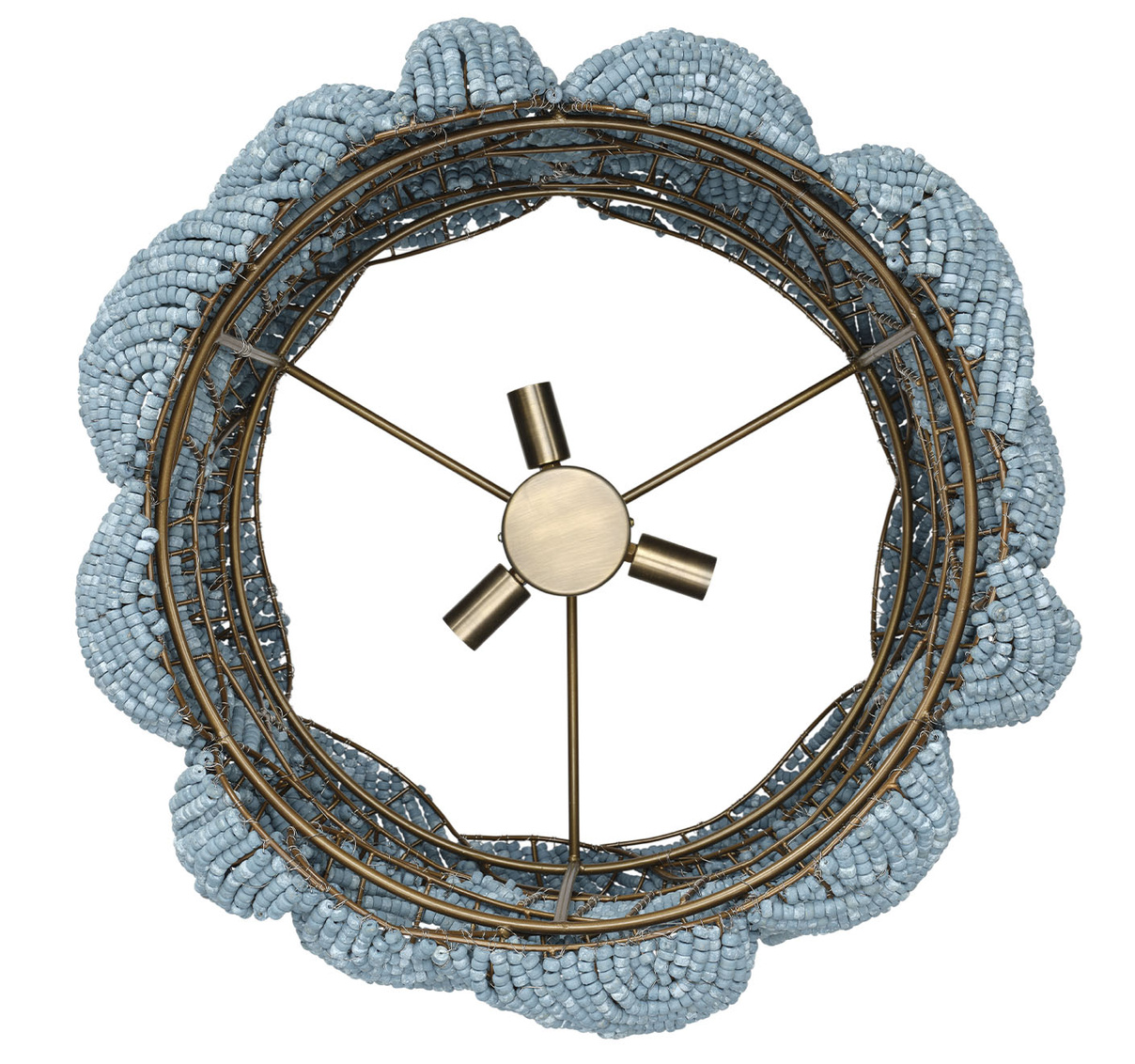 Expertly handcrafted from blue mango wood beads and antique brass, this chandelier introduces a harmonious balance of rustic charm and... Show more