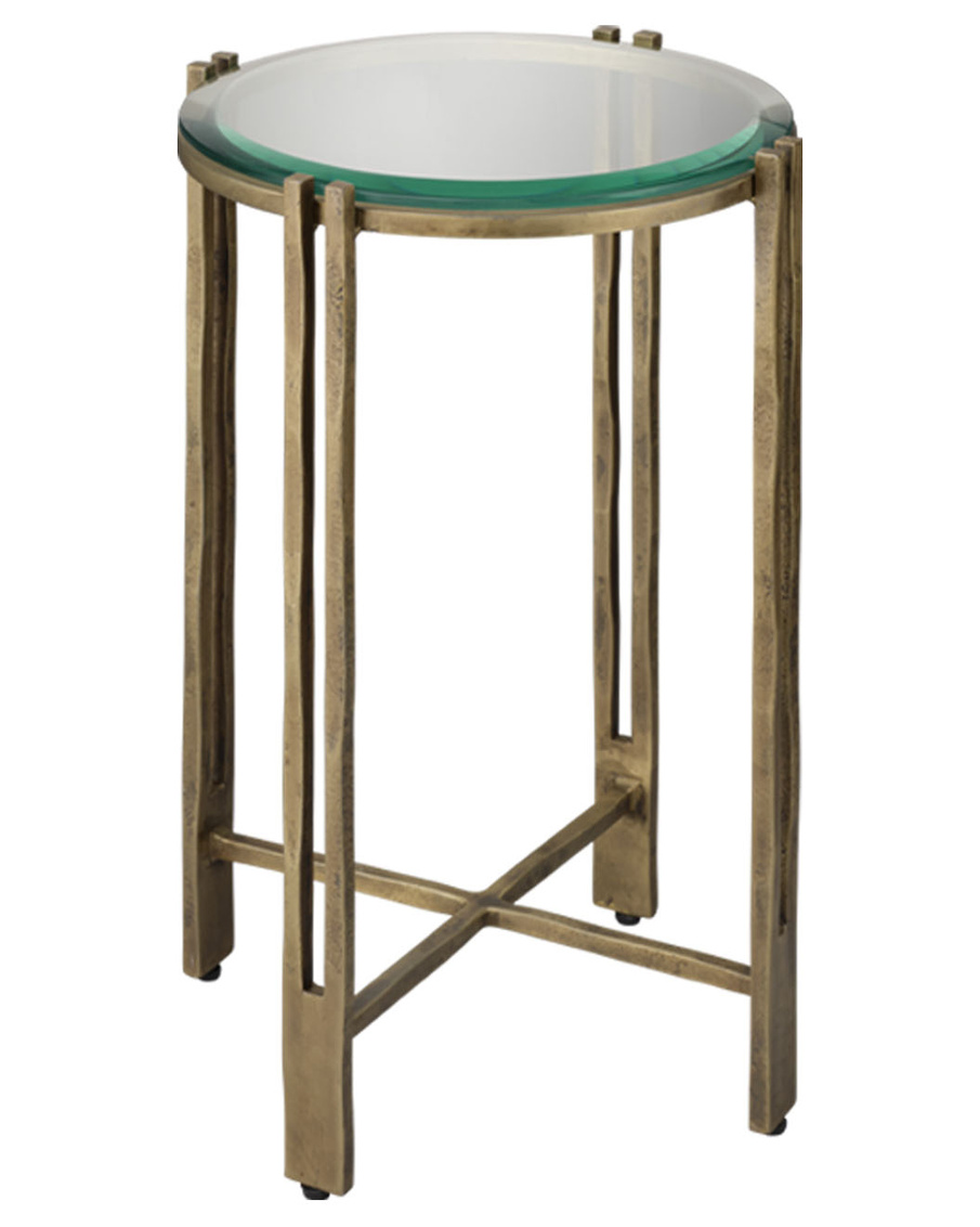 A refined blend of glass and antique brass, this handcrafted side table radiates polished warmth and understated luxury. The airy,... Show more
