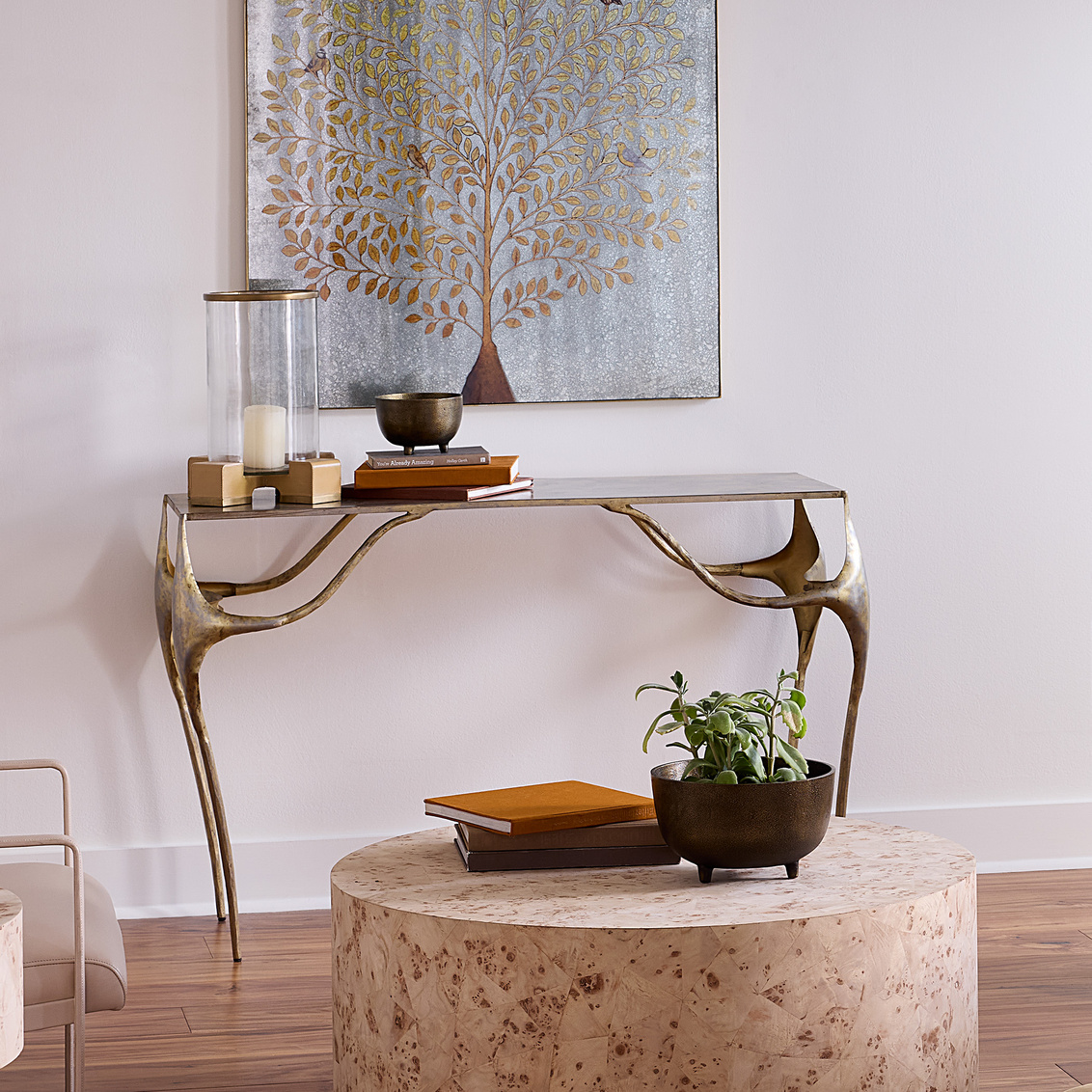 With graceful lines and glowing brass tones, this designer console table infuses your home with quiet sophistication. Every curve and finish detail reflects true handcrafted artistry. Ideal for an entryway or living room, it offers a balanced blend of elegance and warmth. Its refined simplicity and sculptural presence make it an enduring piece that complements interiors from modern to classic.