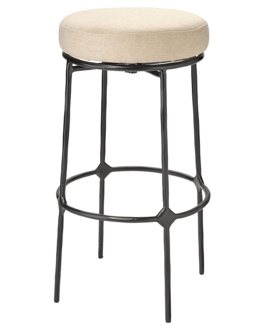 With its hand-forged iron base and softly upholstered seat, this stool brings timeless elegance and comfort to any kitchen or bar. The performance fabric ensures long-lasting durability, while its tailored lines and gentle proportions create an inviting silhouette. Seamlessly blending with both modern and traditional interiors, it’s perfect for gathering, dining, or lingering over conversation in a warm, stylish setting.