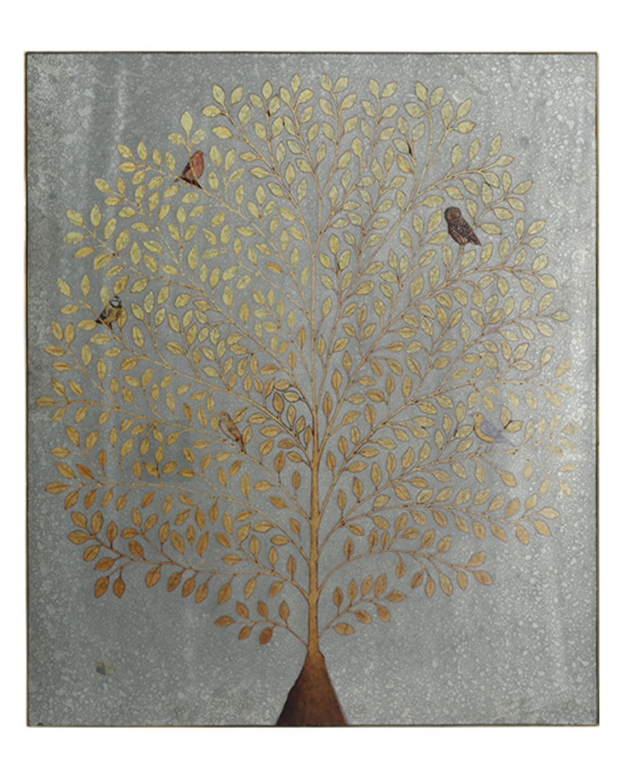 A golden tree of life shelters birds of every hue in this dazzling wall decor piece, inspired by a deeply spiritual symbol found across cultures. Master artisans create the intricate image on the reverse side of antiqued glass, producing a shimmery, opulent finish with profound visual depth. This radiant artwork captures both the beauty of nature and the enduring spirit of connection and renewal.