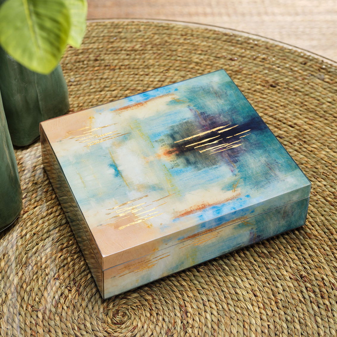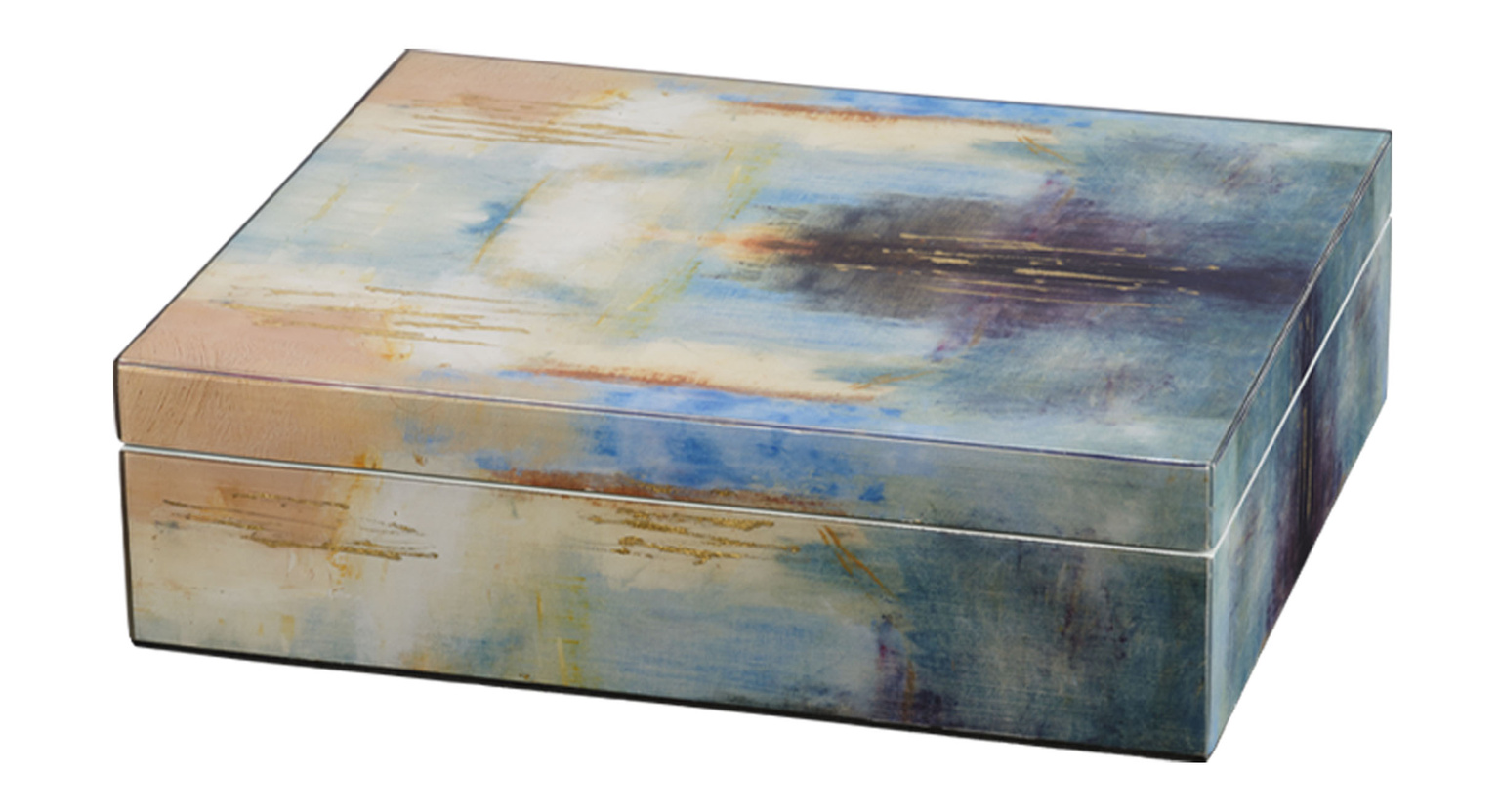 Dreamy washes of color ripple across this decorative lacquer box, creating a fluid interplay of tone and light. Each piece is individually crafted, blending art and function with effortless grace. Perfect for storing keepsakes or displayed as a sculptural accent, it adds a sense of calm and creativity to your home while celebrating the serene beauty of handcrafted decor.