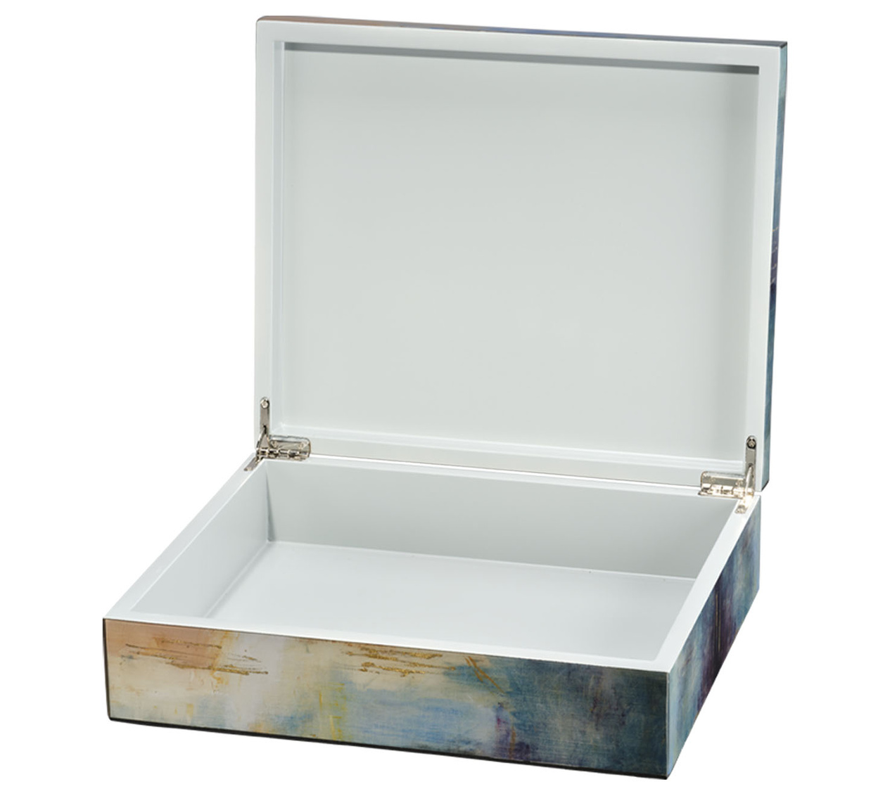 Dreamy washes of color ripple across this decorative lacquer box, creating a fluid interplay of tone and light. Each piece... Show more