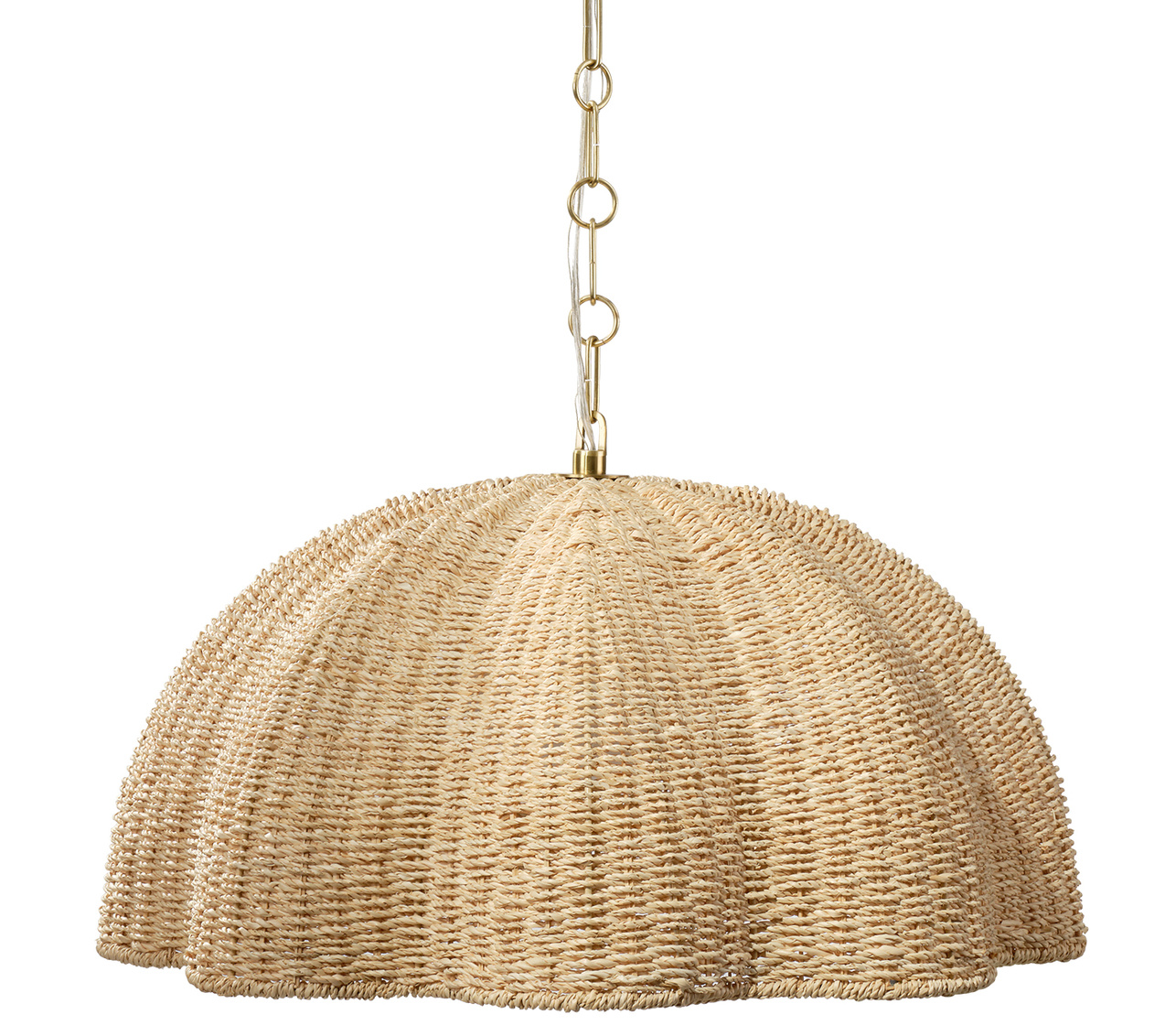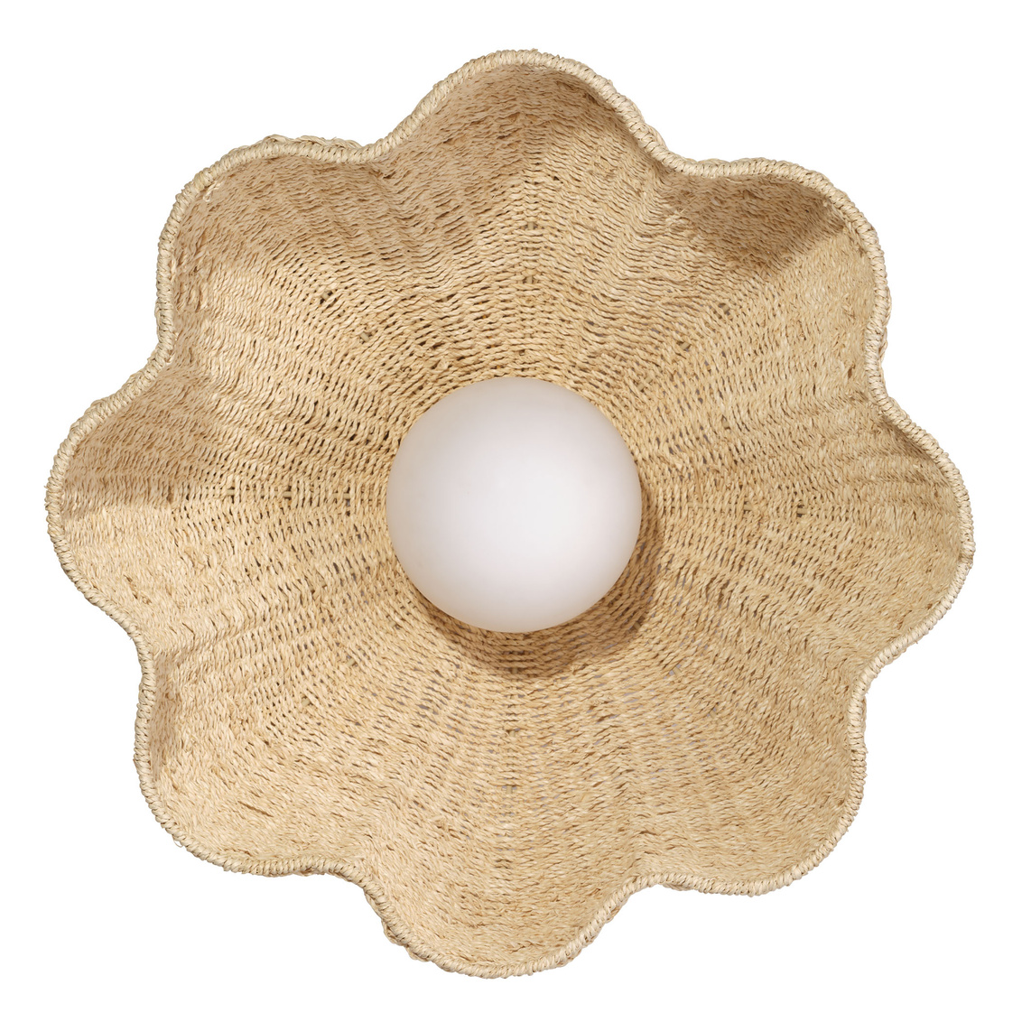 Natural palm leaf is expertly artisan-woven and shaped into a pendant reminiscent of an oversized bloom in this light, airy... Show more