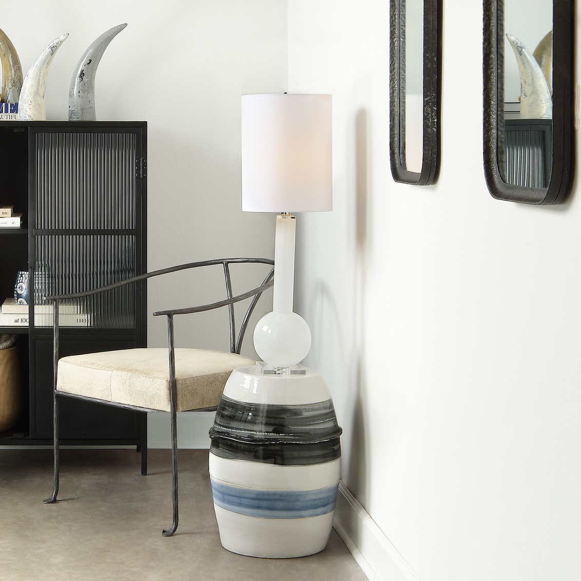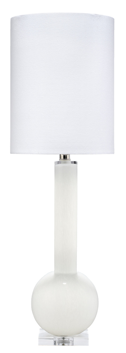 A quietly modern glass lamp in a graceful white glass