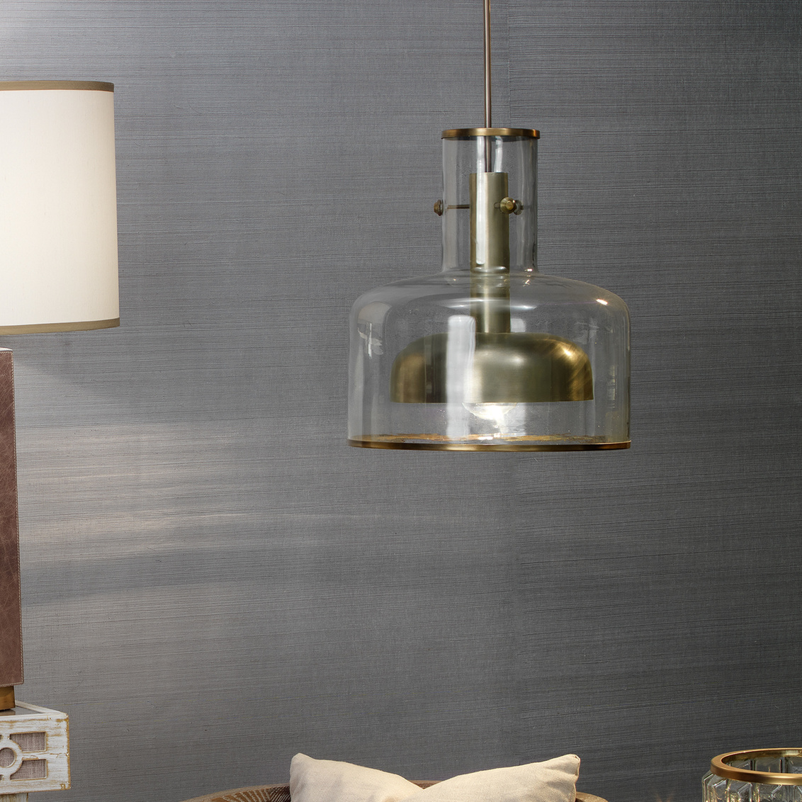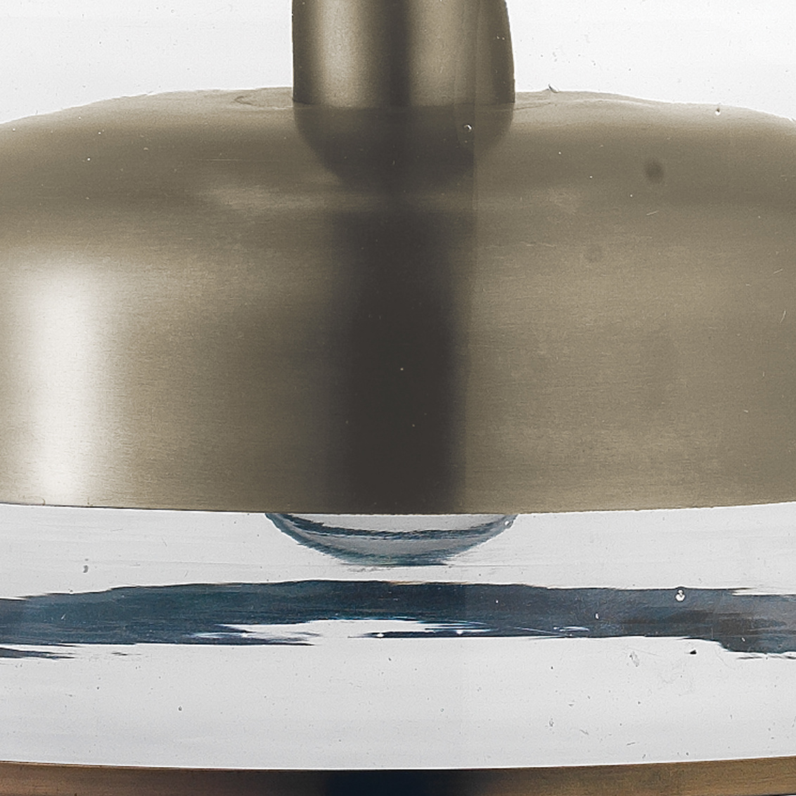 Modern Loft style metal and glass pendant with an unique conception of glass shade over metal.