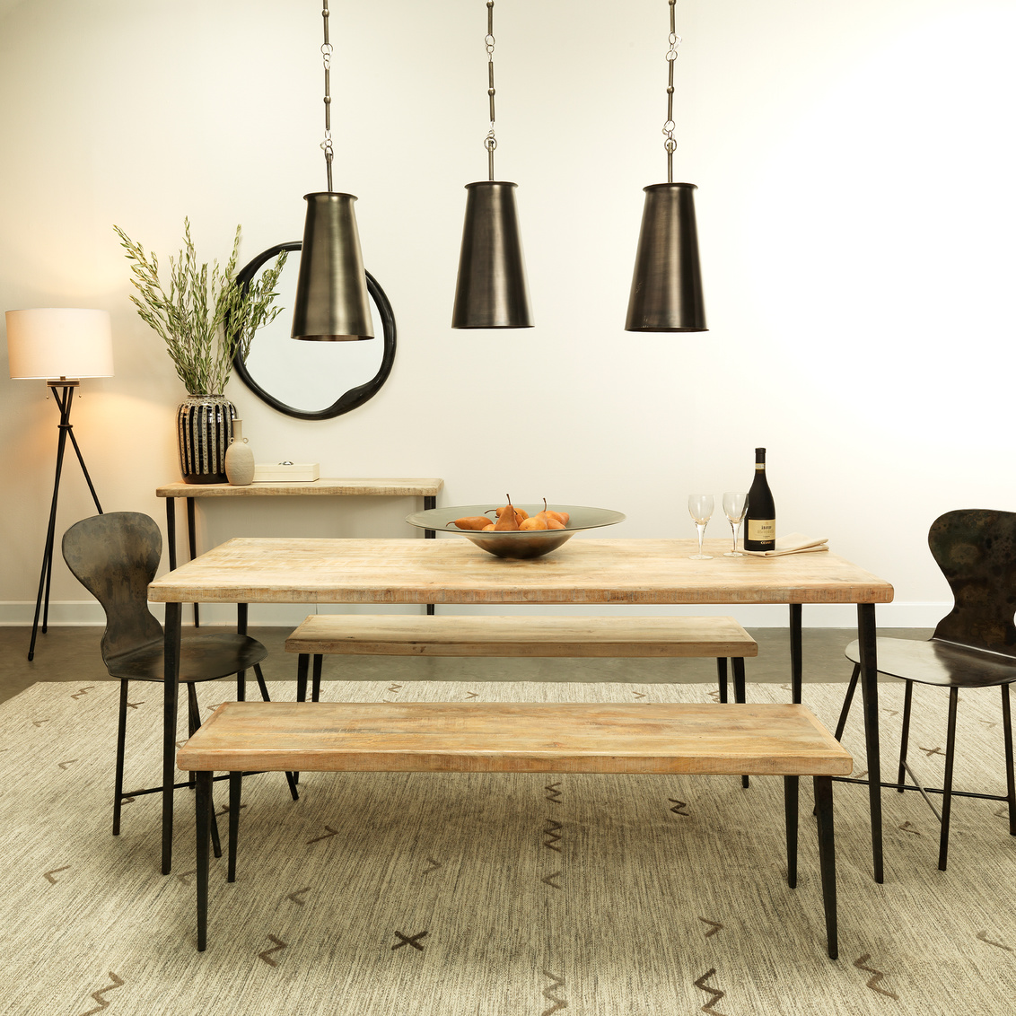 - Finish: Natural Wood & Black Iron
